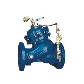 100X遙控浮球閥是兼具多種功能的水力操作式閥門(mén)。主要安裝于水池或高架水塔的進(jìn)水口處,當(dāng)水位達(dá)到設(shè)定的高度時(shí),主閥由浮球?qū)чy控制關(guān)閉進(jìn)水口停止供水:當(dāng)水位下降后,主閥由浮球開(kāi)關(guān)控制打開(kāi)進(jìn)水口向水池汪水,實(shí)現(xiàn)自動(dòng)補(bǔ)水。液位控制精確,不受水壓干擾100x隔膜式遙控浮球閥可隨水池的高度及使用空間任意位置安裝,維護(hù)、調(diào)試、檢查方便、密封可靠,使用壽命長(zhǎng)。隔膜式閥門(mén)性能可靠、強(qiáng)度高、動(dòng)作靈活適用于4 50mm口徑以下的管道。DN 500mm口徑以上的建議使用活塞式。