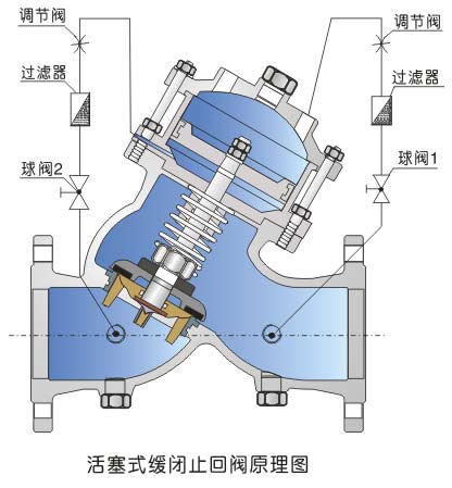 YQ98004過濾活塞式止回閥安裝在高層建筑、消防給水系統(tǒng)以及其它給水系統(tǒng)的管道上。當水泵開啟時,水通過導管進入中腔,推動活塞上升,主閥開關。當水泵停止工作時,活塞在回水壓力下降,由于進口處針形閥比出口球閥流量小,因此活塞緩慢下降,主閥也隨之緩慢關閉。本公司生產(chǎn)YQ98004過濾活塞式止回閥平穩(wěn)可靠,消除壓力余波。過濾活塞式止回閥主要零件材質(zhì)如下表: ![]()