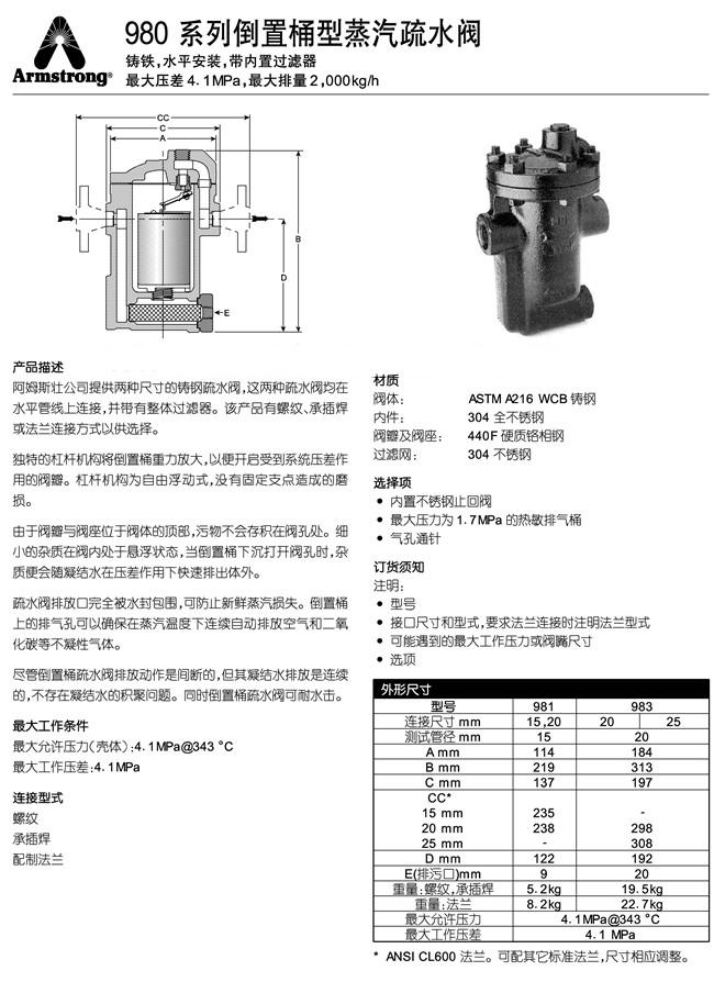 阿姆斯壯980倒置桶型疏水閥