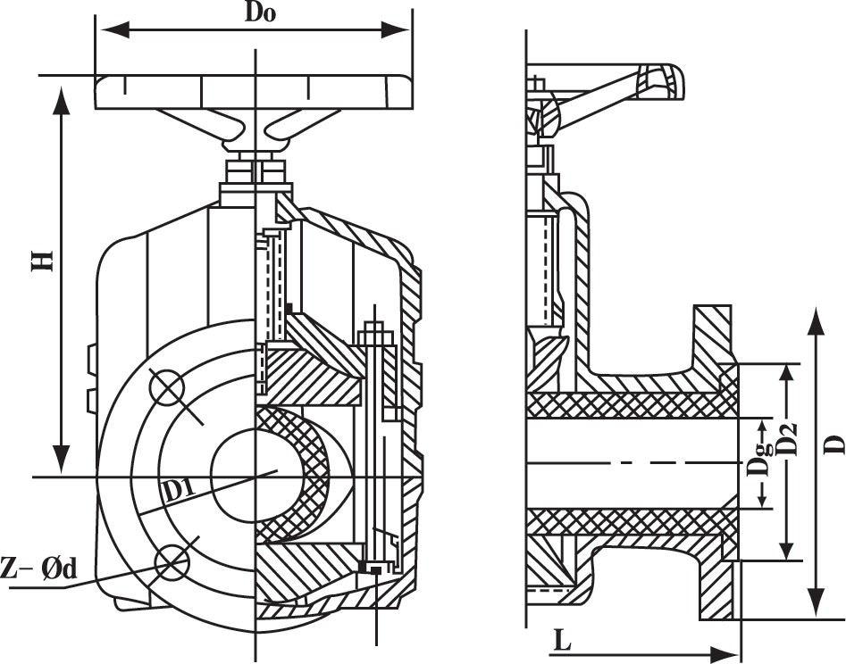 二、GJ41X型鑄鐵管夾閥結(jié)構(gòu)和工作原理: 1結(jié)構(gòu):本閥門由左右閥體,橡膠管套、大小閥桿、上下閘板、導柱等零件組成。 2工作原理:當順轉(zhuǎn)手輪時,使大小閥桿同時帶動上下閘板,壓縮管套,進行關閉,反轉(zhuǎn)即行開啟,這樣,閘板在導柱之間上下往復完成閥門開閉工作。另外,因橡膠管套承力,因此在開關時,操作人員旋轉(zhuǎn)手輪時只要感到適量抵觸,均己達到開閉極點,切勿盡力或多人輔助,禁用其他工具開閉。